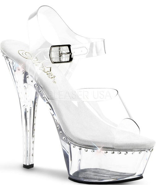 6" (15.2cm) Heel, 1 3/4" (4.5cm) Platform Ankle Strap Peep Toe Sandal Featuring One Line Rhinestone on Platform and Heel (KISS-208LS)