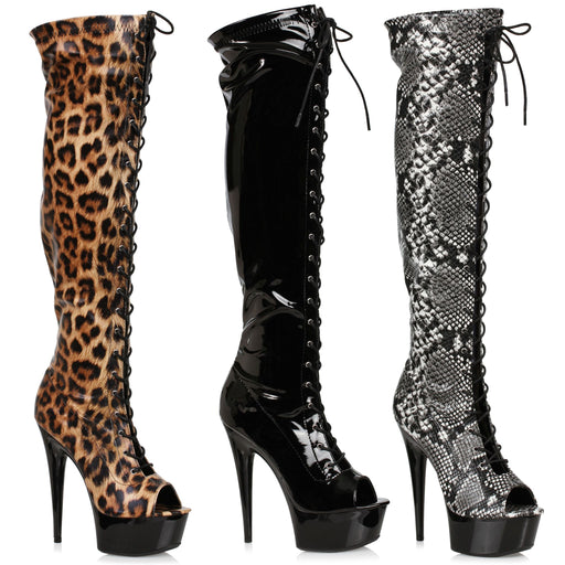 6" (152mm) Heel, 1 3/4" (45mm) Platform Stretch Lace-Up Back Knee High Boot, Inside Zip Closure (DELIGHT-2029 )