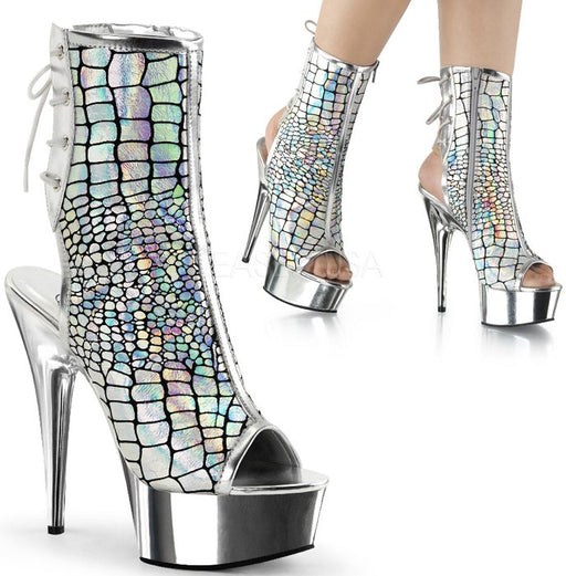 6"(15.25cm) Heel, Open Toe/Heel Back Lace-Up Ankle Boot, Inside Zip Closure with a 1 3/4"(4.5cm) Platform (DELIGHT-1018HG)