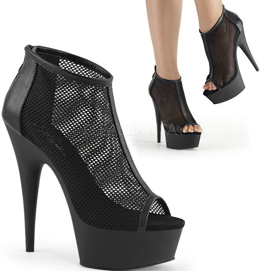 6" (15.2cm) Stiletto Heel, 1 3/4" (4.5cm) Platform Peep Toe Mesh Bootie, Back Zip Closure (DELIGHT-600-12)