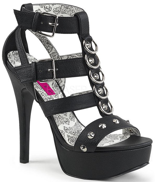 5 3/4" (14.5cm) Heel, Strappy T-Strap Close Back Sandal w/ Metal Rings & Studs Detail with a 1 3/4" (4.5cm) Platform. Wide width (TEEZE-42W)