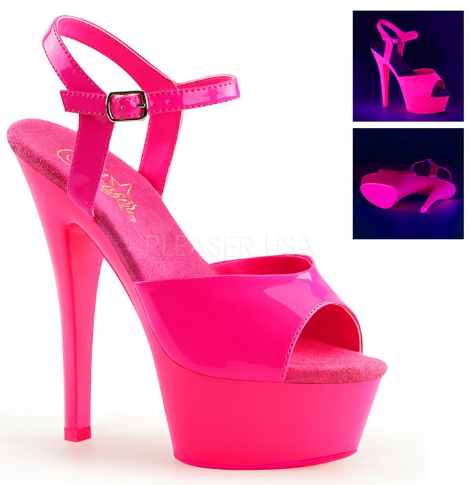 | 6" (15.2cm) Heel, 1 3/4" (4.5cm) Platform Ankle Strap Sandal Featuring Entire Upper, Platform and Outsole /Toplift Neon UV Reactive (KISS-209UV) |
