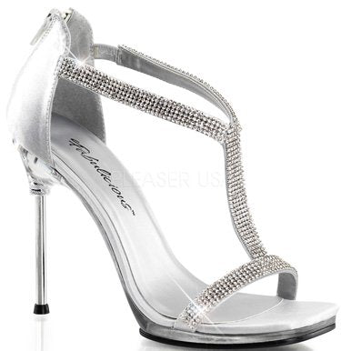 4 1/2" (114mm) Heel, 1" (25mm) Platform Sandal w/Rhinestone Ankle Cuff Featuring Rhinestone Embellished Heel and Platform (ELEGANT-442)