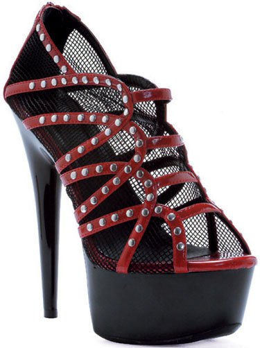 6" Pointed Heel peep-toe Mesh Platform Sandal with patent criss-cross studded strapping (ES609-CASEY)