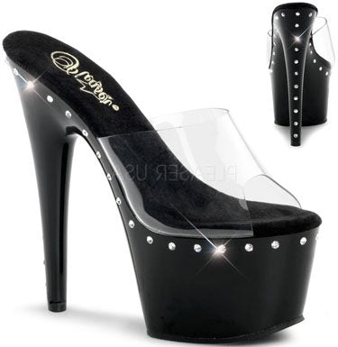 7" (17.8cm) Stiletto Heel, 2 3/4" (7cm) Platform Slide Featuring 1 Line of Rhinestone on Platform and Heel (ADORE-701LS Final Sale)